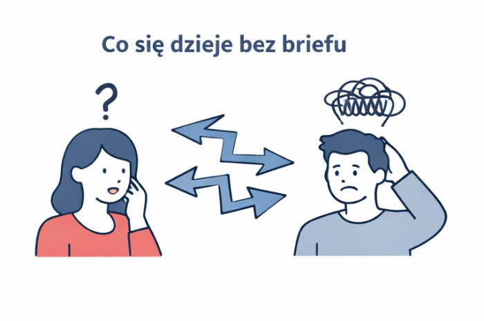 Brak briefu często prowadzi do frustracji. Projekt trwa dłużej, pojawia się więcej poprawek i obie strony są mniej zadowolone.