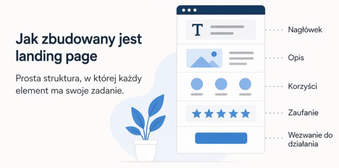 Landing page ma prostą i przemyślaną strukturę. Każdy element ma swoje zadanie.